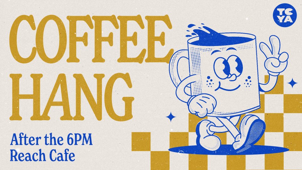 TCYA Coffee Hang & Small Groups About this Event: Every Sunday, join us in the REACH Café for community & fellowship immediately following The Six.☕️✨🎈 SUBSCRIBE FOR UPDATES More Times: Date / Time Sunday, February 15, 2026 @ 6:00 PM Sunday, February 22, 2026 @ 6:00 PM Sunday, March 1, 2026 @ 6:00 PM Sunday, March 8, 2026 @ 6:00 PM Sunday, March 15, 2026 @ 6:00 PM Sunday, March 22, 2026 @ 6:00 PM Sunday, March 29, 2026 @ 6:00 PM Sunday, April 5, 2026 @ 6:00 PM Sunday, April 12, 2026 @ 6:00 PM Sunday, April 19, 2026 @ 6:00 PM Sunday, April 26, 2026 @ 6:00 PM Sunday, May 3, 2026 @ 6:00 PM Sunday, May 10, 2026 @ 6:00 PM Note: Share This Event:
